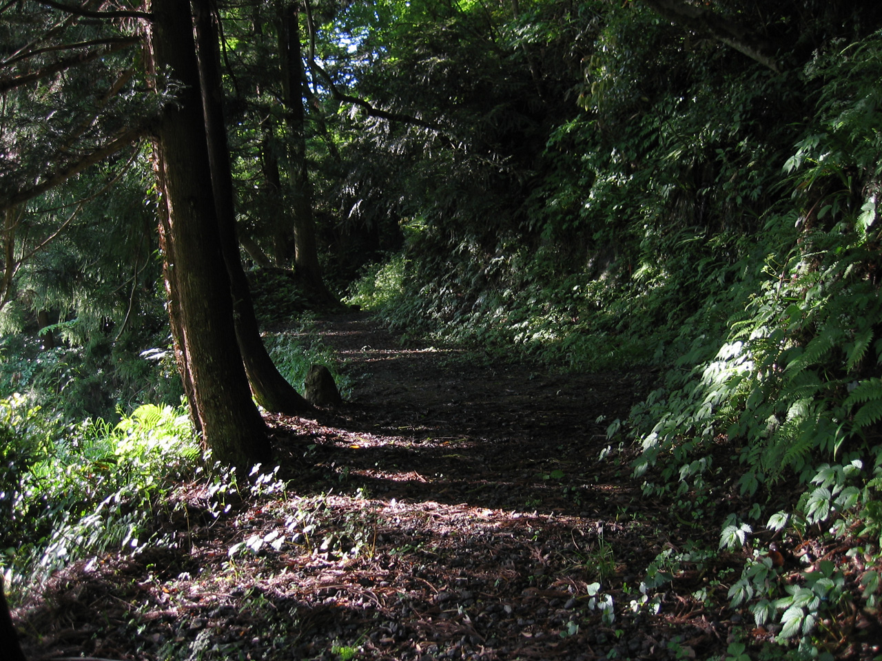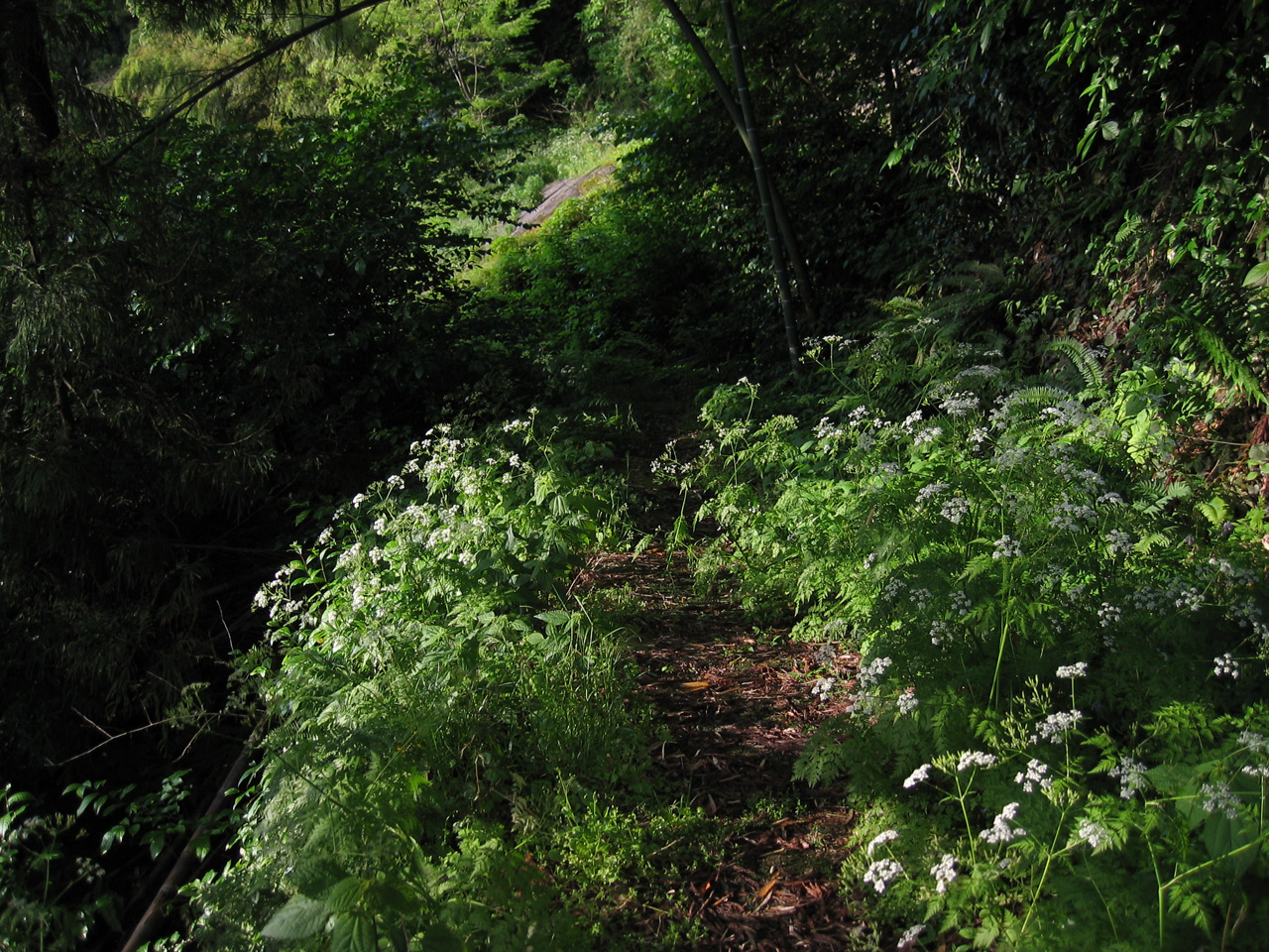 右手の崖の中にトンネルが掘られていて、そこに辰巳用水が流れています。