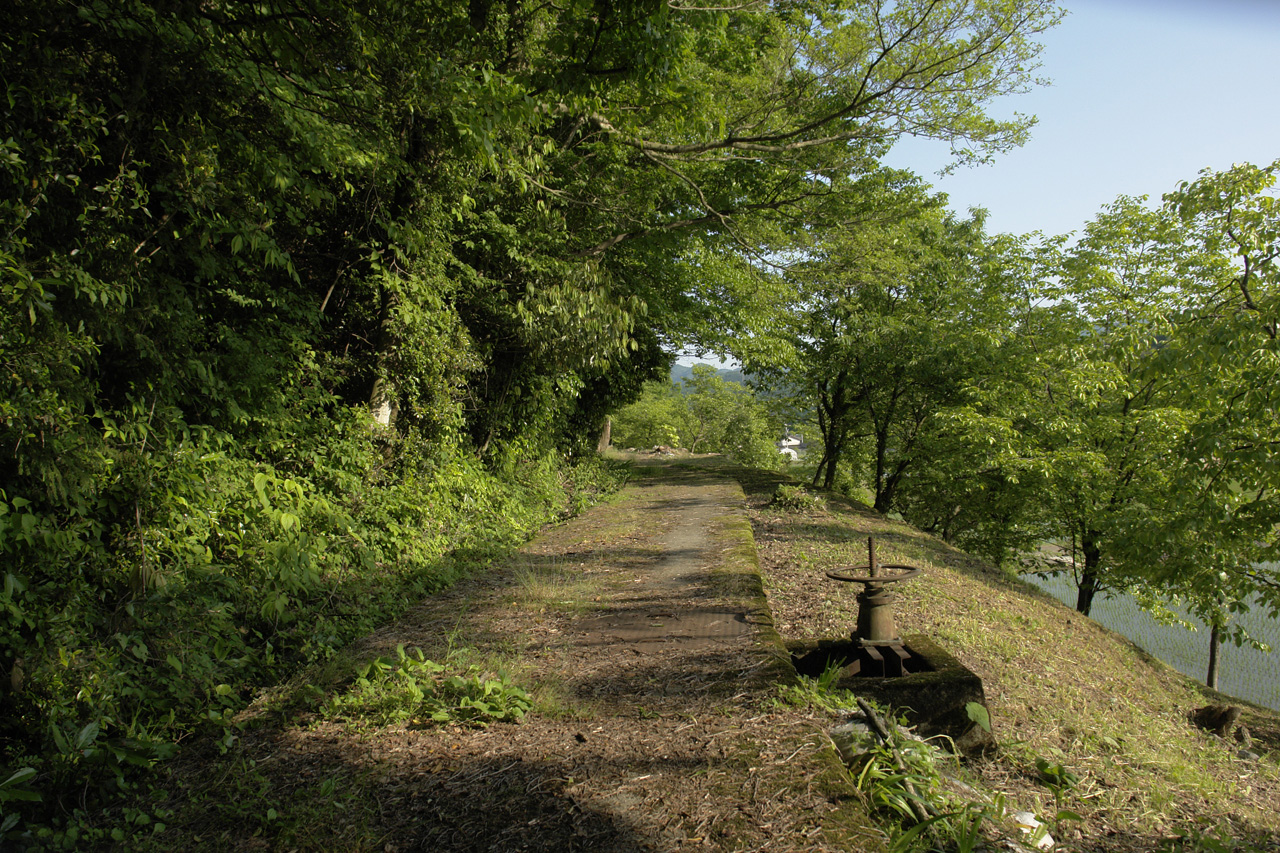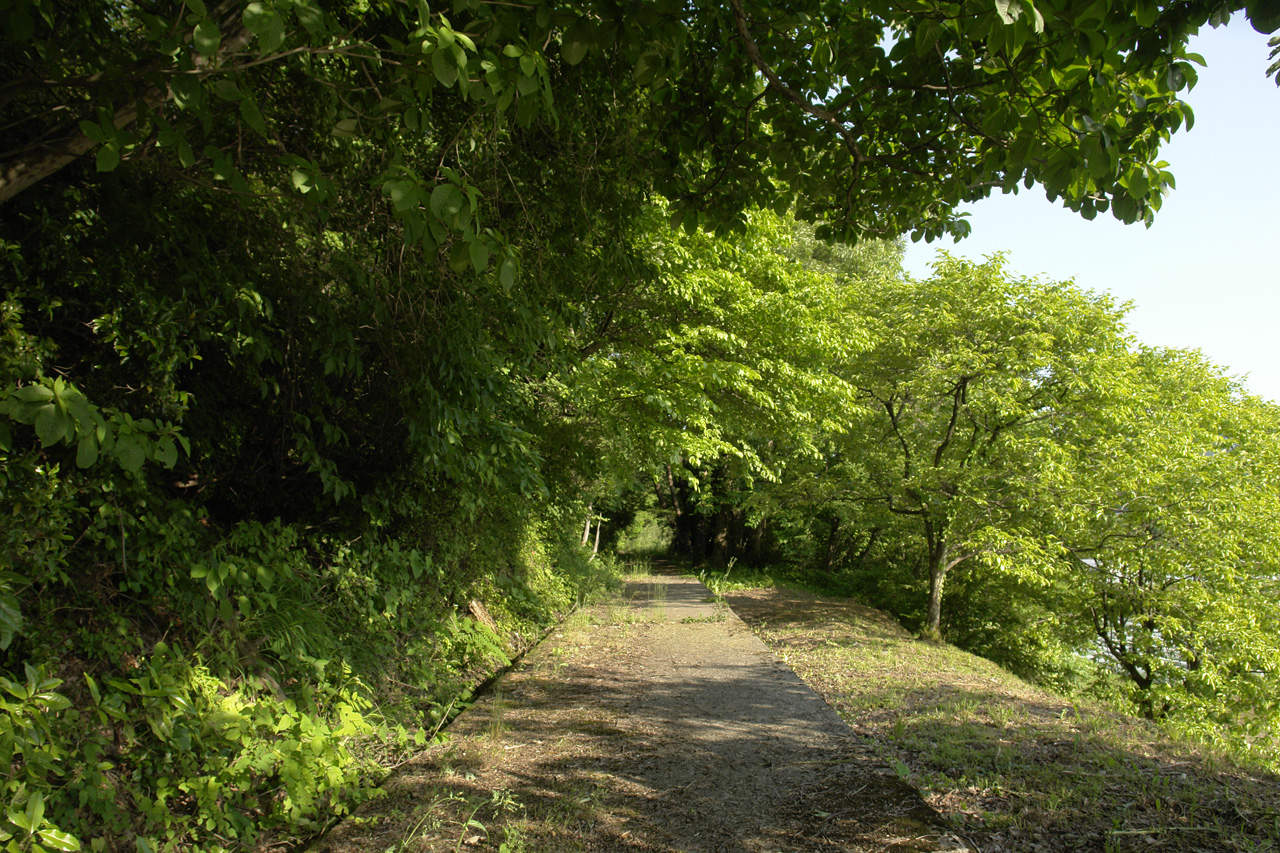 堰堤沿いの道は、まもなく終了です。
