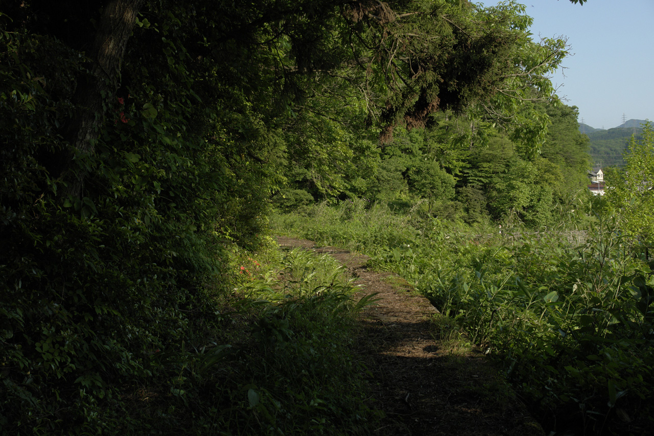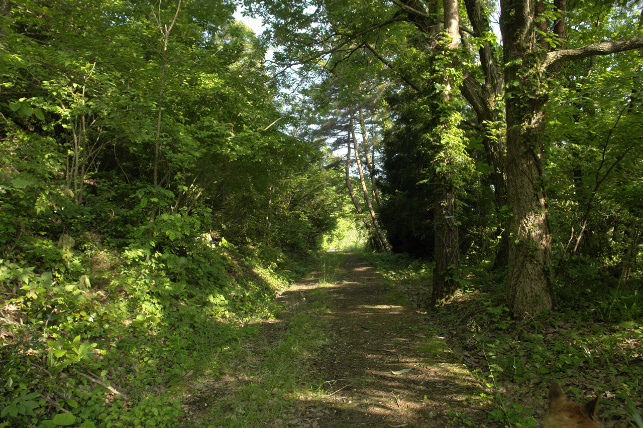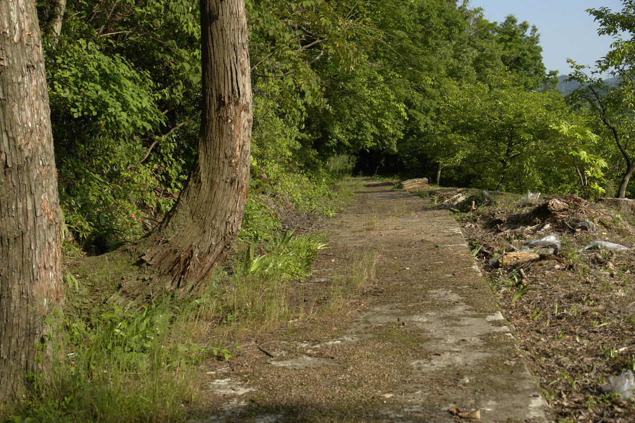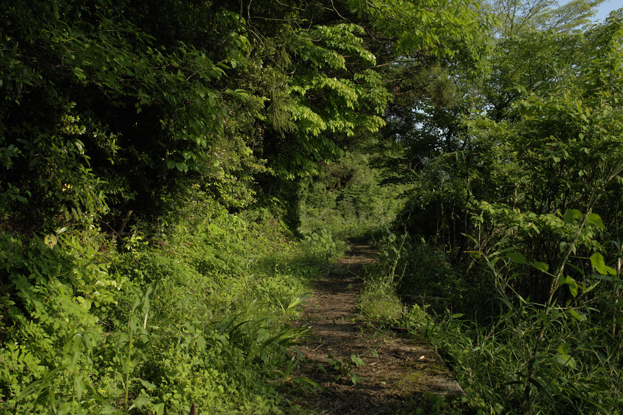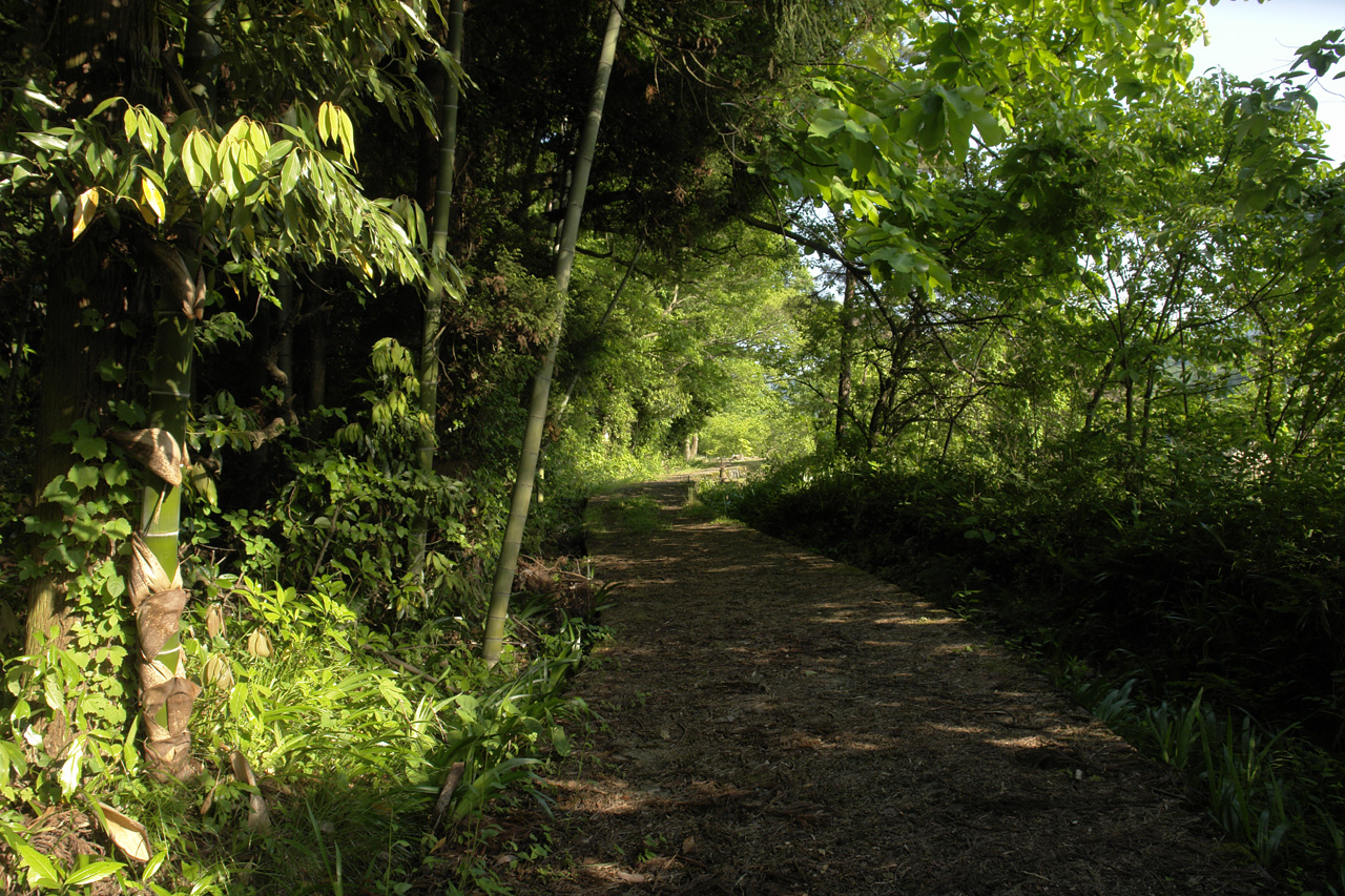 右側に見える道は、山の中へと進んでいく道です。