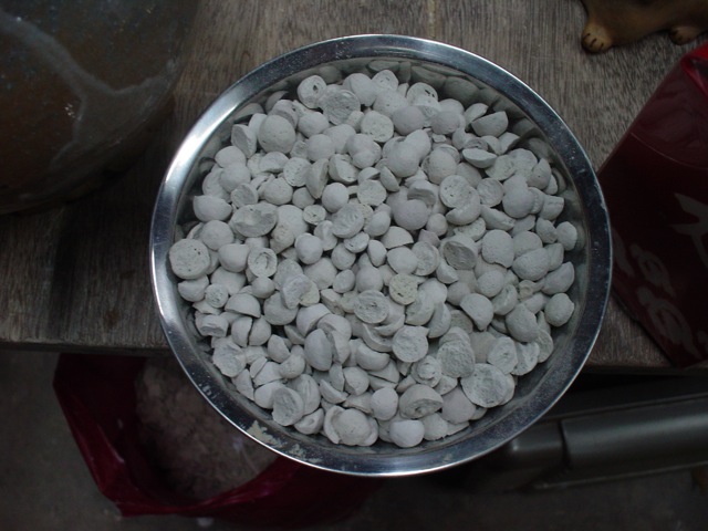 多孔のと、砕いた物との比較。