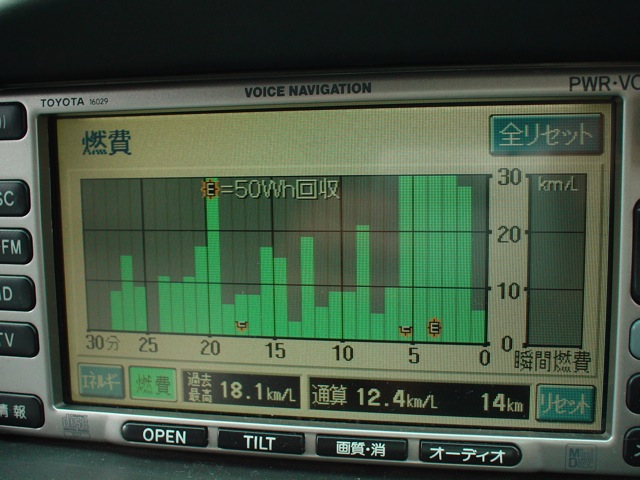 区間燃費:18.1km/L、所要時間24分、距離14kmと出ました!