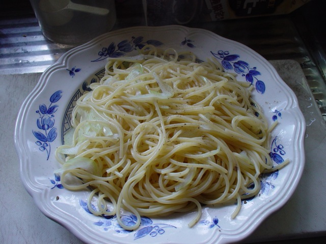 これを、茹で上がる1分前に、パスタ鍋に投入して、軽く火を通します。
