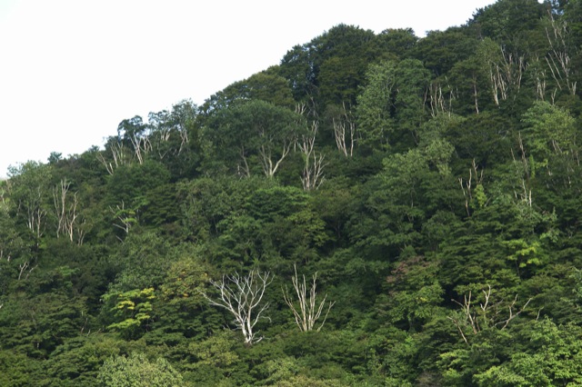 全山至る所に立ち枯れが目につきます、、、、、。